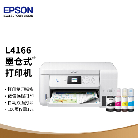 愛(ài)普生(EPSON)墨倉(cāng)式品質(zhì)款L4166(優(yōu)雅白) 微信打印/無(wú)線連接 打印復(fù)印掃描一體機(jī)